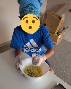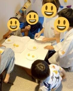 芋をつぶしたり、丸めたりと力加減を意識した工程が多く、つぶれたり、飛び出すこともありましたが、何度も挑戦してみんなでおいしく食べることができまし。