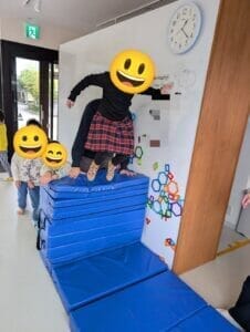 今週の児発の生徒さんは、高いところからジャンプ!皆、やりたいと興味津々。