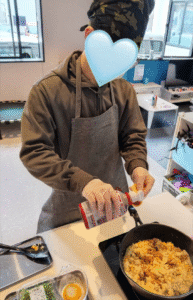 「やってみたい」から、1人で調理に挑戦しました!メニュー決めから買物まで取り組み、自信がついてきています!