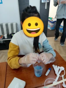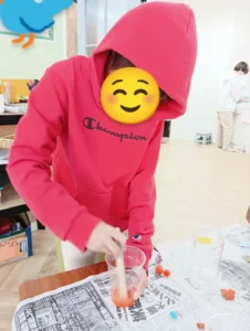 今週の実験プログラムでは『スーパーボール作り』をしました!なんと、洗濯のりと食塩を混ぜるだけで完成です!