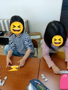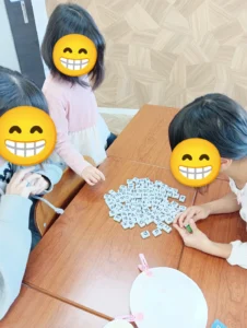 言葉を作ってルールのあるゲームをしたり、自分の名前や家族の名前を探したり楽しくひらがなにふれていました😳