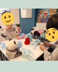 クリスマスに向けて松ぼっくりツリーや毛糸のミニ帽子作りも楽しんでいます。