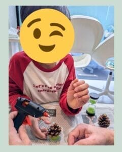 クリスマスに向けて松ぼっくりツリーや毛糸のミニ帽子作りも楽しんでいます。