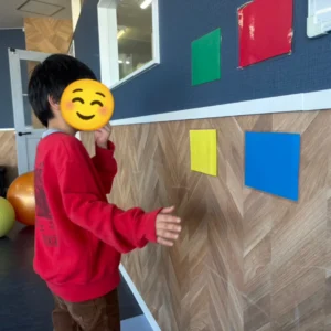 今週の運動プログラムでは、職員が言った色をタッチする活動を取り入れました!