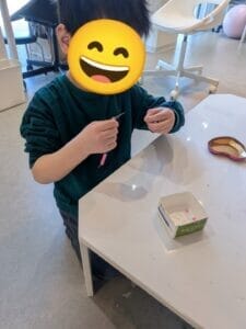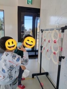 ボール的狙いやビーズ通しなど、発達を促す遊びも楽しんでいます。