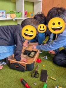 おもちゃの電池がなくなれば、自分たちで交換。